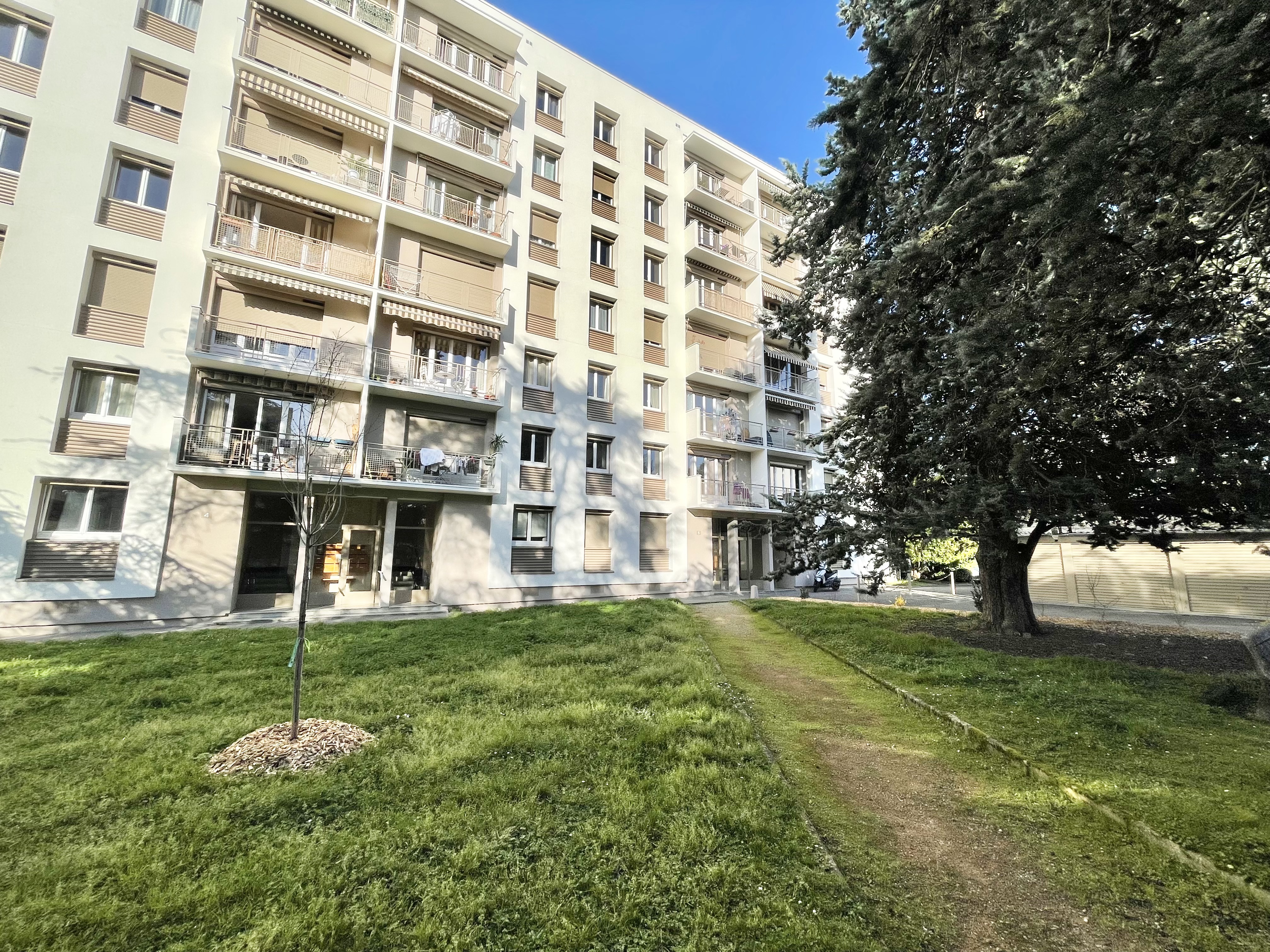 La copropriété est fermée sur la rue et donne directement sur la « voie verte ». L’immeuble date des années 60 et a été rénové intégralement en 2025. Façades ravalées et isolées par l’extérieur, système de chauffage collectif neuf.